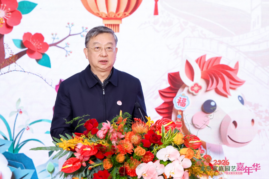 高大伟在致辞中表示,北京正全力打造“春新彩、夏浓绿、秋斑斓、冬银墨”的城市风貌,努力把首都建设成为一个大花园。着力推动绿化彩化立体化,丰富公共空间花卉园艺元素,提升城市品质新高度;精心打造“花园四季”城市IP,传承发展传统生态文化,涵养公众美德新风尚;创新营造美丽经济多元场景,培育壮大特色花卉产业集群,打造绿色发展新高地。他指出,乘着花园城市建设的东风,花卉园艺已成为生态文明的鲜活注脚、烟火生活的清新韵味。北京市家庭园艺零售端年销售额突破60亿元,逛花市、云购花等传统和新兴消费呈现蓬勃增长之势,为首都绿色发展注入新质生产力。花卉园艺持续融入节庆、饮食、游艺、社交、商务等内容,呈现千姿百态的形式,其所承载的迎福纳祥、崇尚自然等传统文化的内核,绽放出时代精彩,成为市民精神文化世界的温润底色。 开幕式上,发布了全国首个花卉价格指数预测系统,举行了年销花组合盆栽颁奖仪式,山东菏泽市、贵州黔西南州、广东东莞市、福建龙岩市四个年宵花特邀城市领导分别作了推介,北京市花卉协会作了2026北京国际花展推介,园艺达人分享了花卉生活感悟。